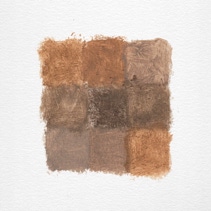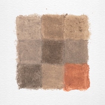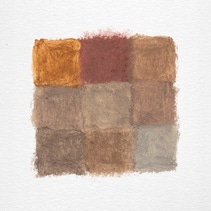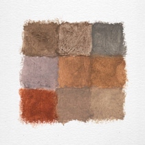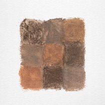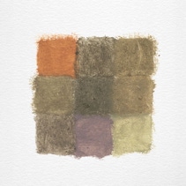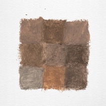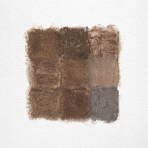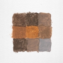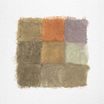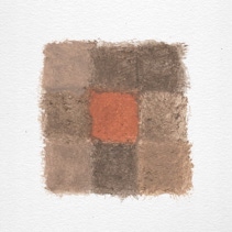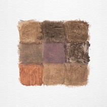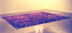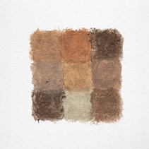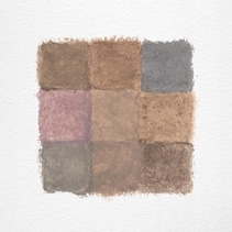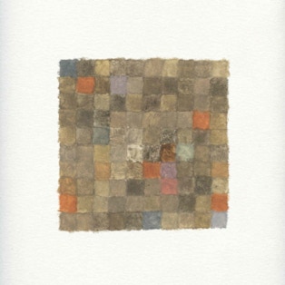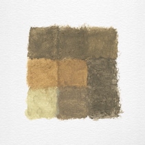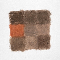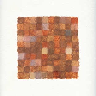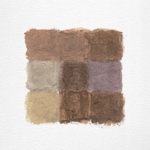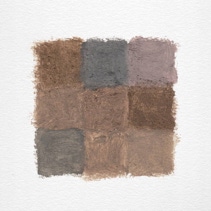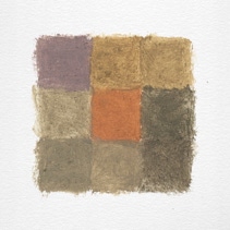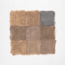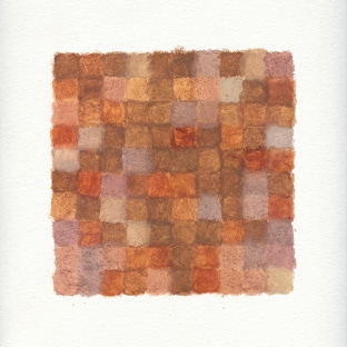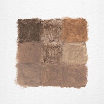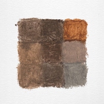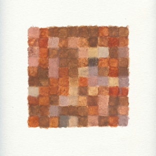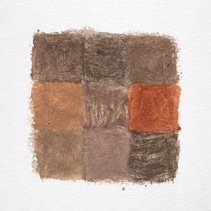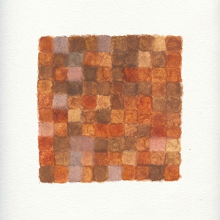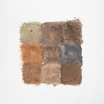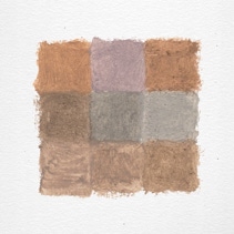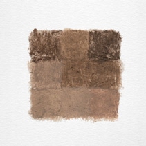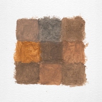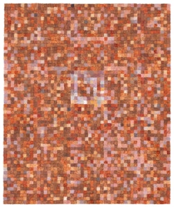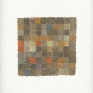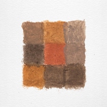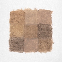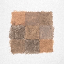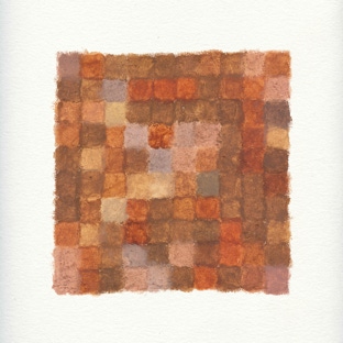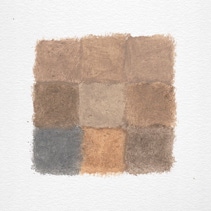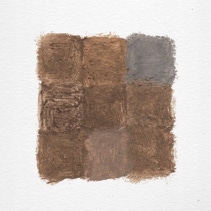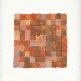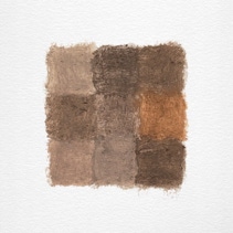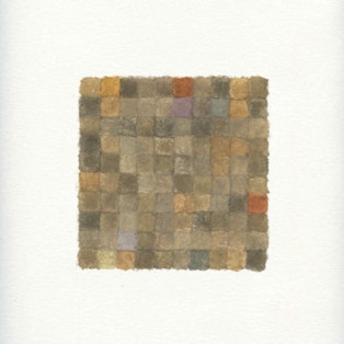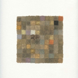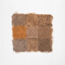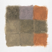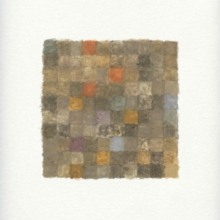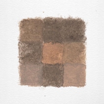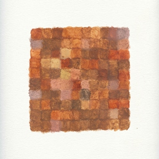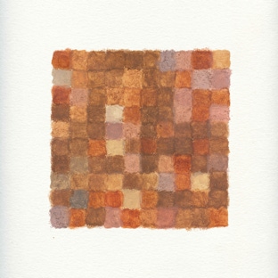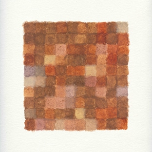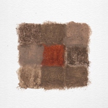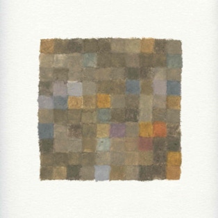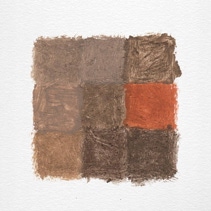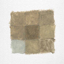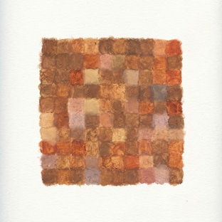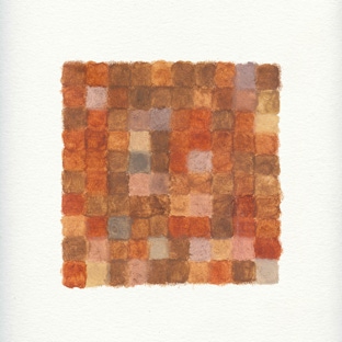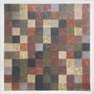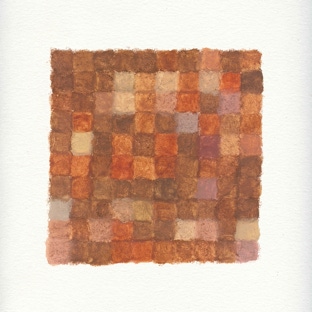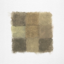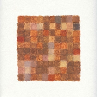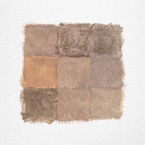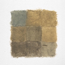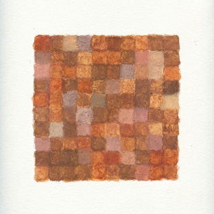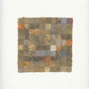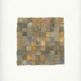 That text continues: “In the works of recent years, the same hands have smeared mud to map the movements of the artist’s windmilling arms on a surface. The areas thus described are then filled in by the repetitive accretion of lines made with parallel, echoing movements of a brush. These works, on canvas, on paper, or on the wall, take the simplest materials in their rawest form and harness the body’s natural geometry to create images which refer to nothing more than bodily rhythms and the daily round. They are as light in their effect as they are pure in their means, thanks to the spaces in between the lines, whose dimensions are determined by theuncontrived measurement of the eye, hand and fingers as they do their work. The mud balls represent an even simpler use of raw materials, mud as mud, and their form is a similarly straightforward expression of the hands that make them. In their spacing for the installation the same natural measurement is at work, resulting again in a lightness in the background grid which records the rhythm of production and deployment.”