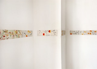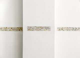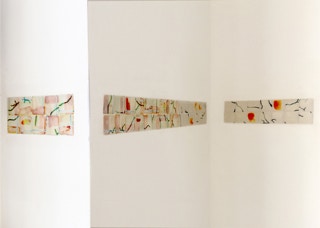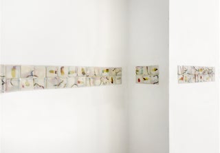 Start with a square. A square with four sides, four edges. A square with four corners. One side is marked with colour. The side is chosen at random. Sometimes a square of gold sits in a corner. The corner is chosen at random. The exercise is repeated four times, with varying random numbers from one to four. 100 small squares form one large square. On the large square, traces of London’s Lost Rivers. Colours are covered by brush, revealed with finger marks.