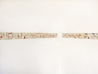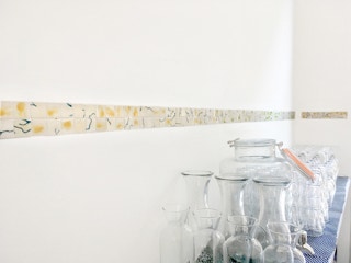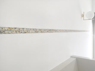 1400 hand-painted Emaux de Briare mosaic tiles, 2.5 x 2.5 cm. Graphite, Porcelaine 150 paint and gold leaf.